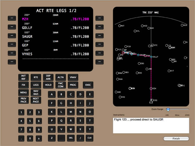 Learning from instructionsIf we have a good theory about learning, can this also help us to improve learning situations? Anderson's work on algebra models has shown that they can serve as a fruitful basis for cognitive tutors, programs that keep track of the student's knowledge, and select new exercises and feedback accordingly. My own work, funded by NASA and the Air Force, concerns modeling how people learn from instrustions and eventually derive robust knowledge that leads to flexible performance. That is, even if the task is different, or interrupted, or otherwise changed, people can easily adapt and do the right thing. The domain we study this is programming the flight management system (FMS) of a Boeing 777.