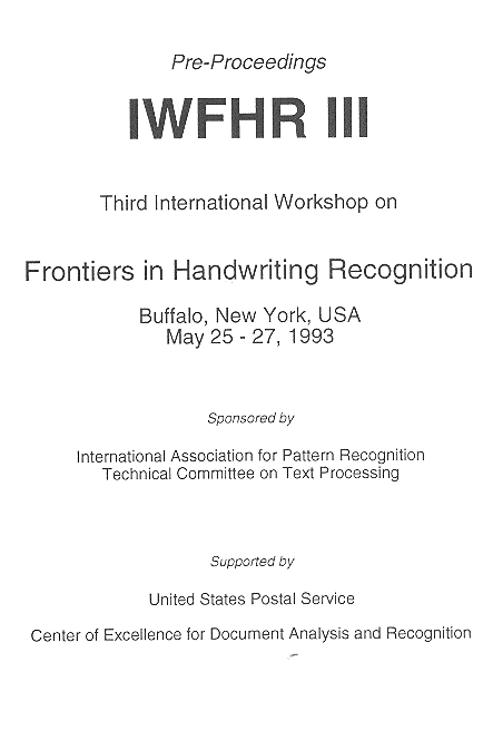 Third International Workshop on Frontiers in Handwriting Recognition (IWFHR-3)